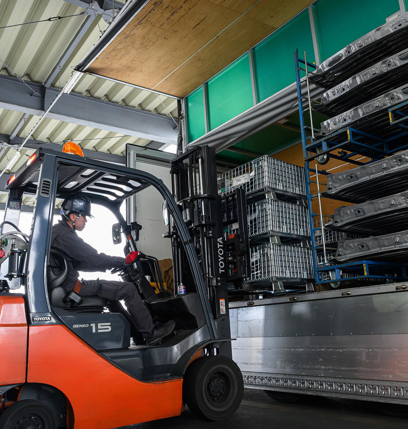 当社は1981年の設立以来、静岡県・磐田市を拠点にした一般区域貨物自動車運送事業を展開。なかでも「工場間部品輸送」に特化しており、大手自動車メーカー様や給湯機器メーカー様の製造部品を生産拠点にお届けする“物流パートナー”として、信頼と実績を重ねてきました。